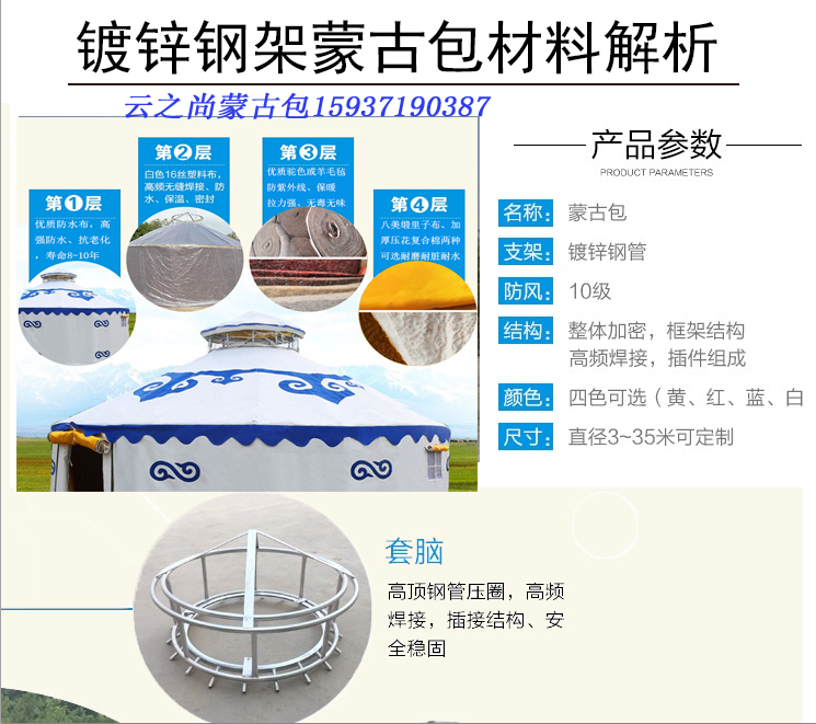購買蒙古包價格、4米蒙古包一般價格多少、河南云之尚蒙古包結(jié)構(gòu)穩(wěn)固、烤漆鋼網(wǎng)、品種有:餐飲蒙古包、住宿蒙古包批發(fā)、選購云之尚戶外帳篷、價格合理、送貨上門。