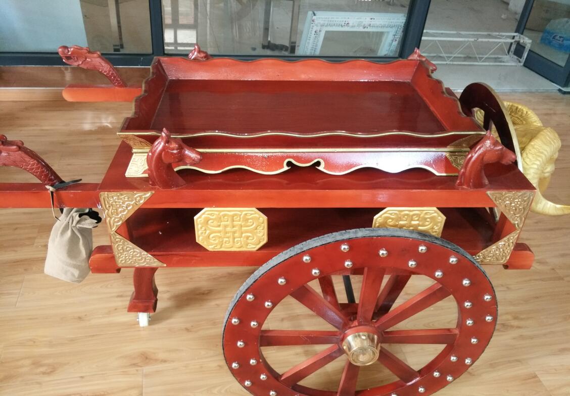 鄭州蒙古包廠家、烤全羊車多少錢、烤全羊餐車、烤全羊木車、蒙古包民族工藝廠、蒙餐專用工具主要用于烤全羊系列送餐工具、有木輪子和轎架組合定制而成、木制工藝車做工復雜、一般木工師傅做不了、所以面臨失傳、
